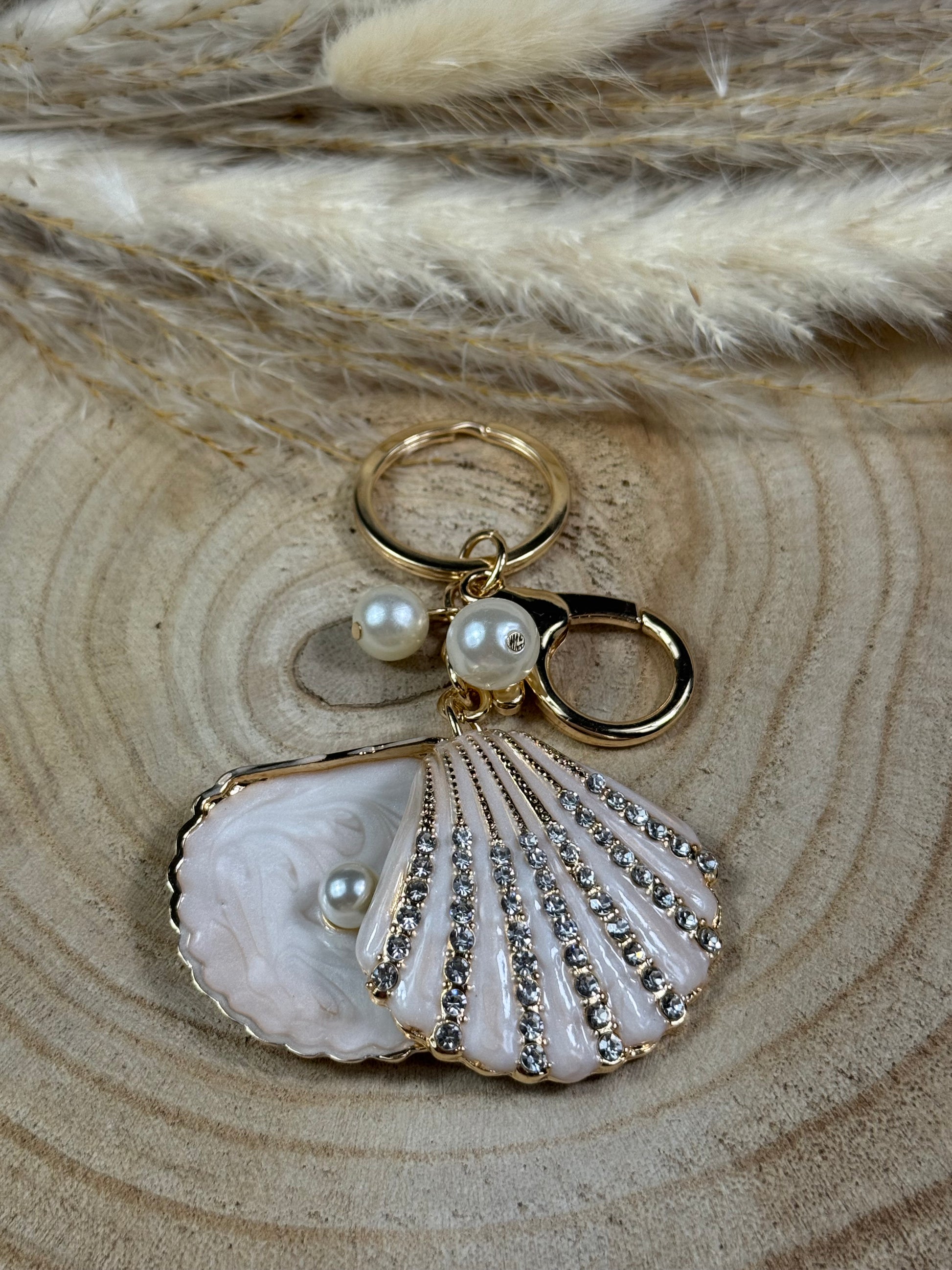 Ist aus Gold Metall, umfasst auf der Vorderseite sehr viele Strasssteine eine Perle, Quaste und eine Rose in Altrosa!